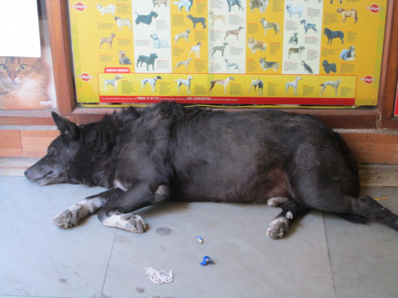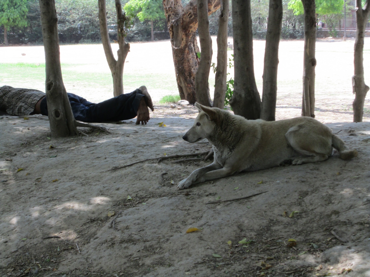 一番熱いシーズンだという4~5月のデリー、犬たちはすでに9時にはグテっと死んだようにしていて身動きがまるでなかったので、地元の人を見習って、ひょいひょいと犬たちの塊の中を通過するときはよけて歩きました。が、ちょっと日が陰ってきた午後6時になったとたん、その塊が一斉に動きだしたときはさすがにびびりました(汗)。