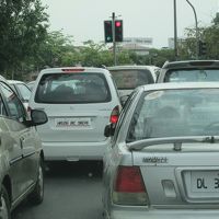インド全般に言えますが、交通マナーが非常に悪いです。定員オーバー、過積載は当たり前で、日本では車検が通らないような古い車が走っています。写真の前の車はおかしいです。左のサイドミラーが開いていません。なかにはサイドミラーがない車もいます。どうもドライバーはミラーを使わずに運転しているようです。