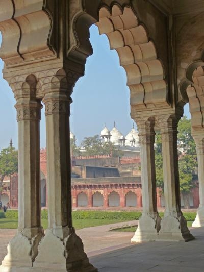 アグラーを含む北インドの冬は、寒い上に朝晩濃霧が発生します。我々は朝8時過ぎにタージマハールに到着しましたが、かなりの濃霧で数十メートル先が見えない程でした。どうしてもタージマハールの美しい姿が見たかったので午前中一杯粘り、結果的には素晴らしい姿は見れたものの、かなり冷えました。タージマハールの敷地内にあるベンチは、金属製なので、座ったら座ったでかなり冷えます。長い時間を過ごす予定がある場合は、しっかり着こんで行かれた方がいいと思います。