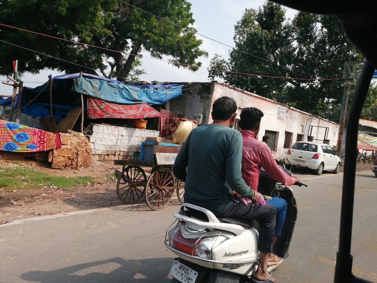 タージ・マハルから少し離れると舗装も十分でない道路で砂埃がひどかったです。ヘルメットなし二人乗りのバイクが何度も車に割り込んできて危なかったです。 -
