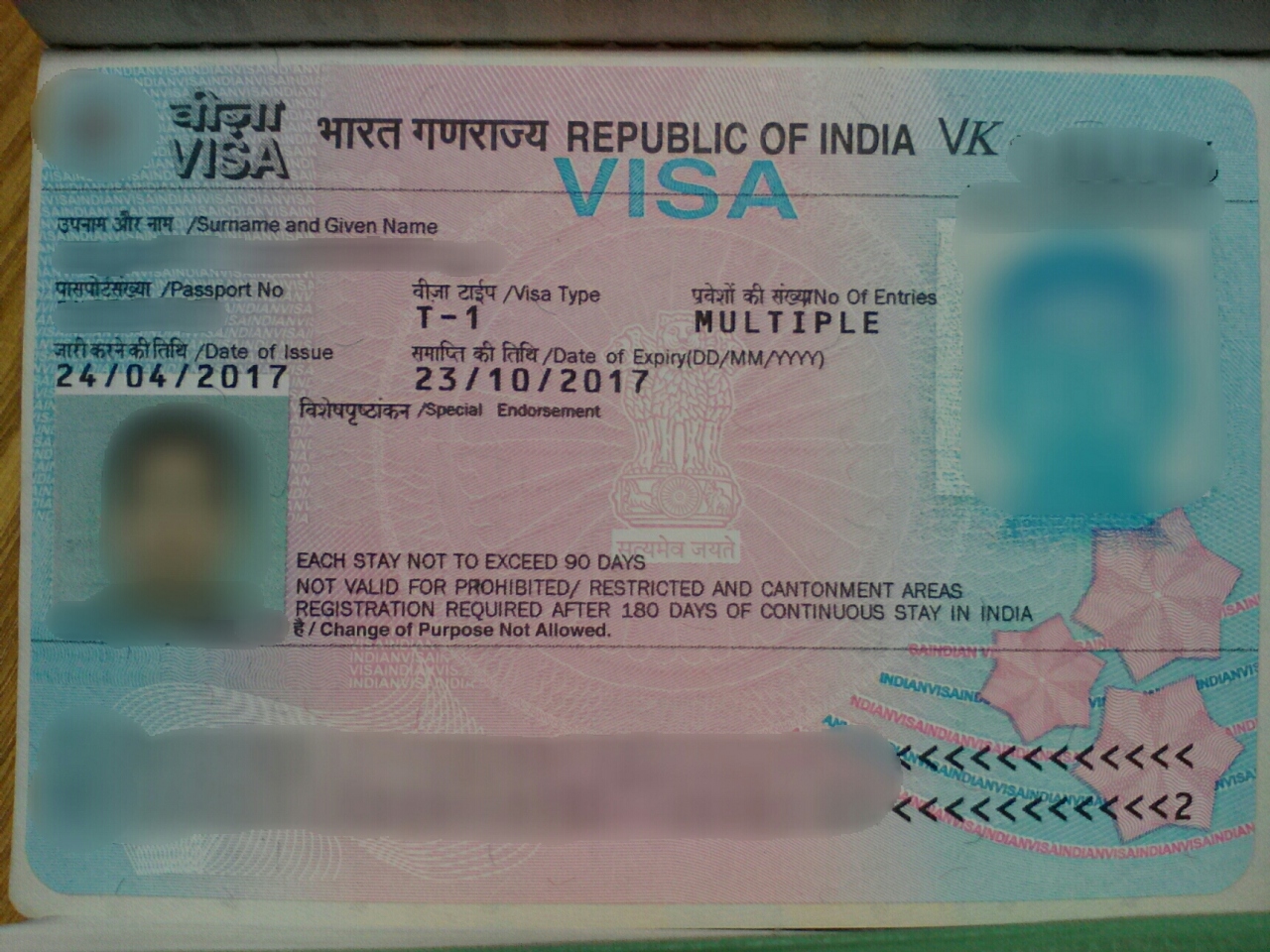 2017年9月にインドVISA(ツーリストビザ6ヶ月マルチ)を郵送で取得しました。
