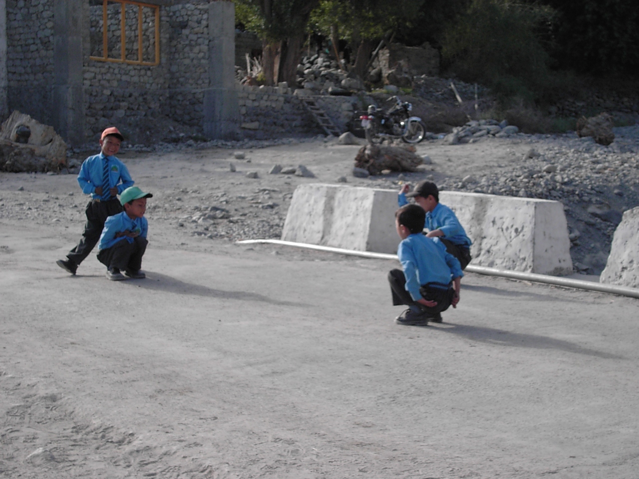 写真はローカルバスを待ちながらハンカチ落としをして遊んでいた子供達です。 -