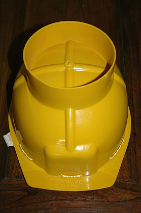 ヘルメットは丸くて滑りやすいから物を乗せにくいのでは、と思っていたら、画像のような工夫がしてありました。ヘルメットと短い円筒状のものが一体となっています。これで上に乗せるものも滑り落ちません。