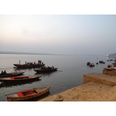 11月下旬に行き、日の出前から2時間ほどボートに乗りました。バラナシは昼間は暖かかったので、早朝とはいえダウンを着て行くかどうか迷いましたが、結果的には着て行って大正解でした。日が昇れば暖かくなるかと思いきや、ボートの上で爽やかな風に吹かれ続けたために時間を経るごとにどんどん体が冷えていきました。