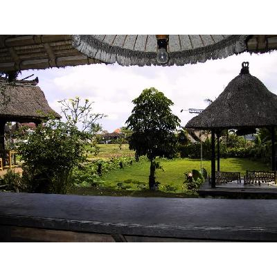 ウブドのモンキーフォレストから近いカフェ・クブク、ココは友人に紹介され行ったのですがゆったりと過ごせます。まずカフェにはお座敷タイプのオープンエのスペース(バレの大きいの?)がありそこに主人と二人で上がりこみライスフィールドを眺めつつ飲むココアはホント最高です。3つしかないそのバレのような席には地元の若いバリニーズカップルが寝転がって長々と話し込んでいましたが心地良さそう!もう一つのバレにはオーストラリア人の女性とバリニーズがやはりゆったりと話しこんでいました。私達は約1時間ほどバンブーの奏でる優しいメロディに癒されながらバレの中でゴロゴロ歩きつかれた足もスッカリ癒えて活力がみなぎってきたと言っても言い過ぎではありませんでした。