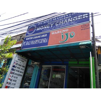 ウブドで1番レートのよかったマネチェンはJalan Raya Ubud沿いのウブド市場から東に100mほど行ったところにある「PT. BALI MASPINT JINRA AMC.」。この日のレートが1USD=Rp13660、1円=Rp113.7でした。