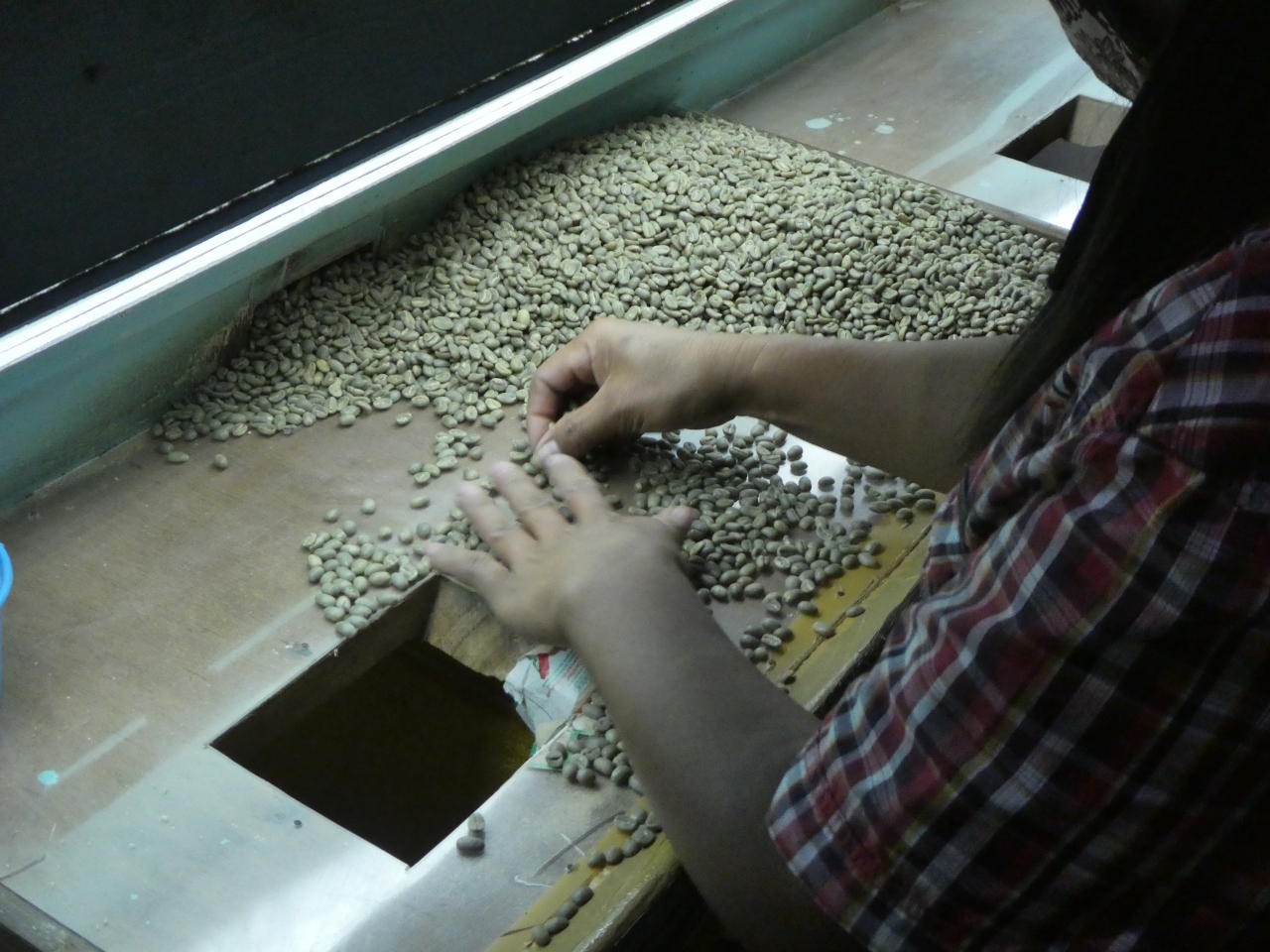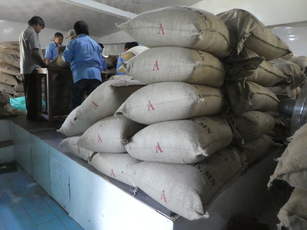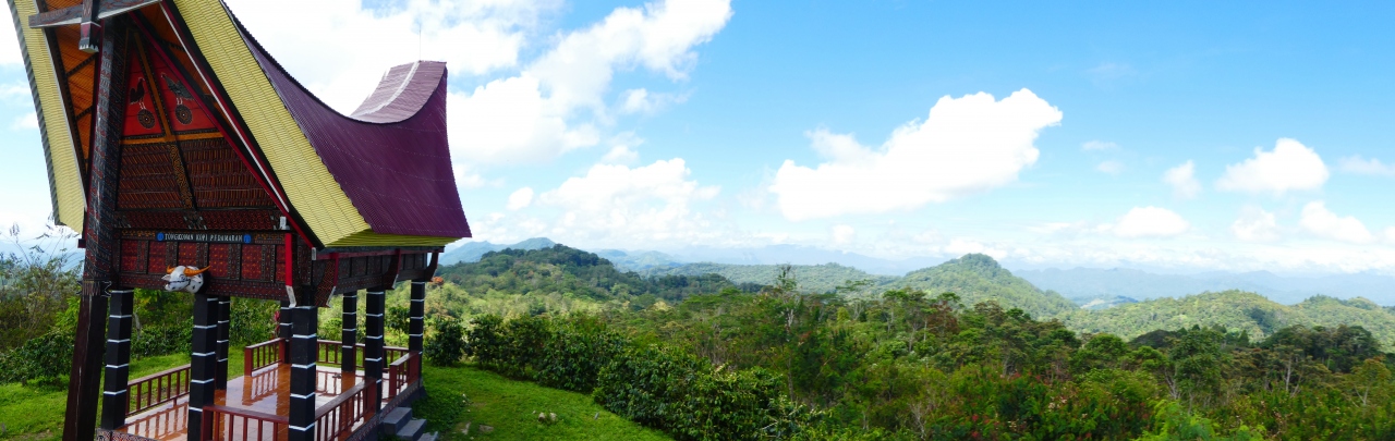 スラウェシ島にキーコーヒー株式会社のコーヒー農園があります。場所は島内部のタナ・トラジャ地区、お分かりの通り、ここはキーコーヒーのかの有名な「トラジャコーヒー」の名前の由縁となった所です。戦前からあり、戦後に地元からの要望も有り、再開したそうです。近くの町はランパテオ、この地区の観光の拠点でもあります。現地の車(ペテペテ等)で農園に行けるかと思いますが、当時は結構な悪路でした。当方は、旅行出発前にキーコーヒー(株)の広報に見学の申し込み、往復は現地駐在員のお世話になりました。年1,2名はこのような日本人観光客が来るそうです。農園では、見学後に本場物のトラジャーコーヒーを飲ませていただきました。州都であるマカッサルには直営店舗もあります。