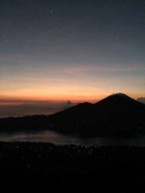 ホテルピックアップ → キンタマーニ高原にて現地ガイドと合流 → トレッキングスタート → 山頂にて日の出鑑賞 朝食ボックス→ 下山 → ホテル帰着