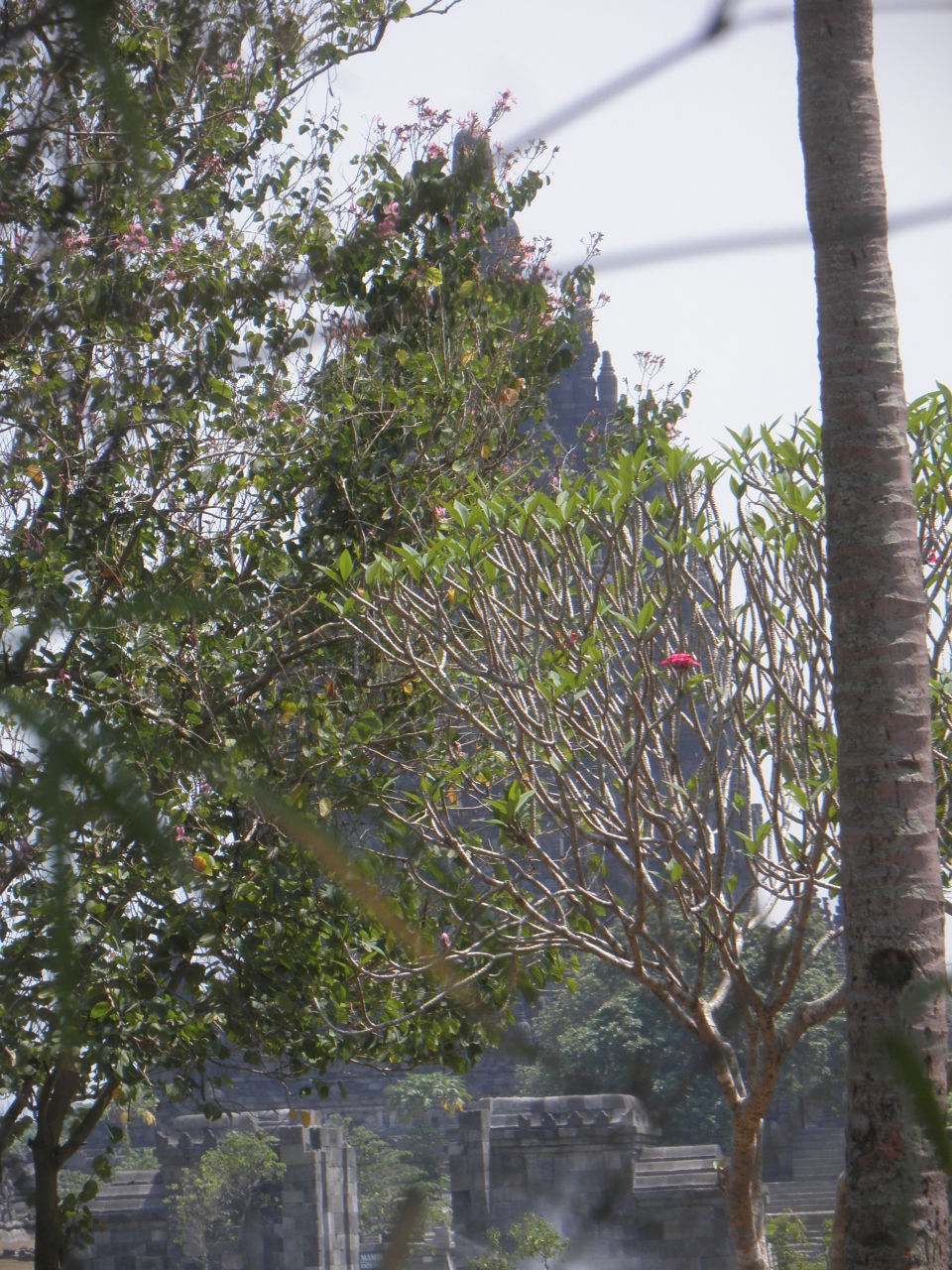 9月のシルバーウィークにインドネシアのジャワ島を観光旅行しました。世界遺産のブランパナン遺跡群を見に行きました。 ここは緑の多い広大な公園になっていて歩きでがありました。 短パン、Tシャツ、サンダルの服装でした。 入場口では日傘などを売り歩く人が何人かいました。