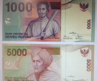 現地表示単位はたいていルピアです。換金値は大きいほどお得です。