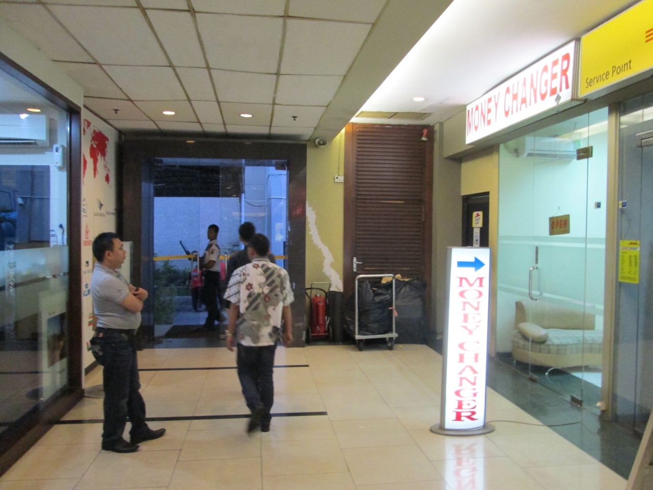 サリナデパートの向かいにあるLotusというビルの1階にある両替所で両替しました。1万円に対して115万8千Rp.(11/23両替)というレートでした。手数料はありません。パスポート等の身分証明書の提示不要です。Lotus1階にはレストラン、スタバ、バーガーキングなどがあり気軽に寄れるところです。