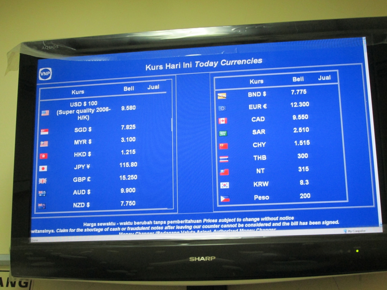 なぜか、USドルで10ドルです。シンガポールドルやインドネシアルピーでも両替所も