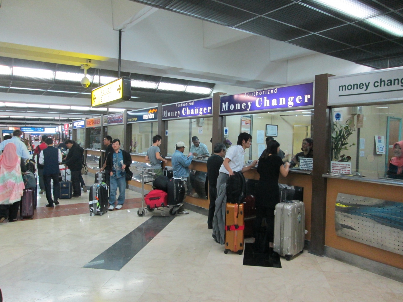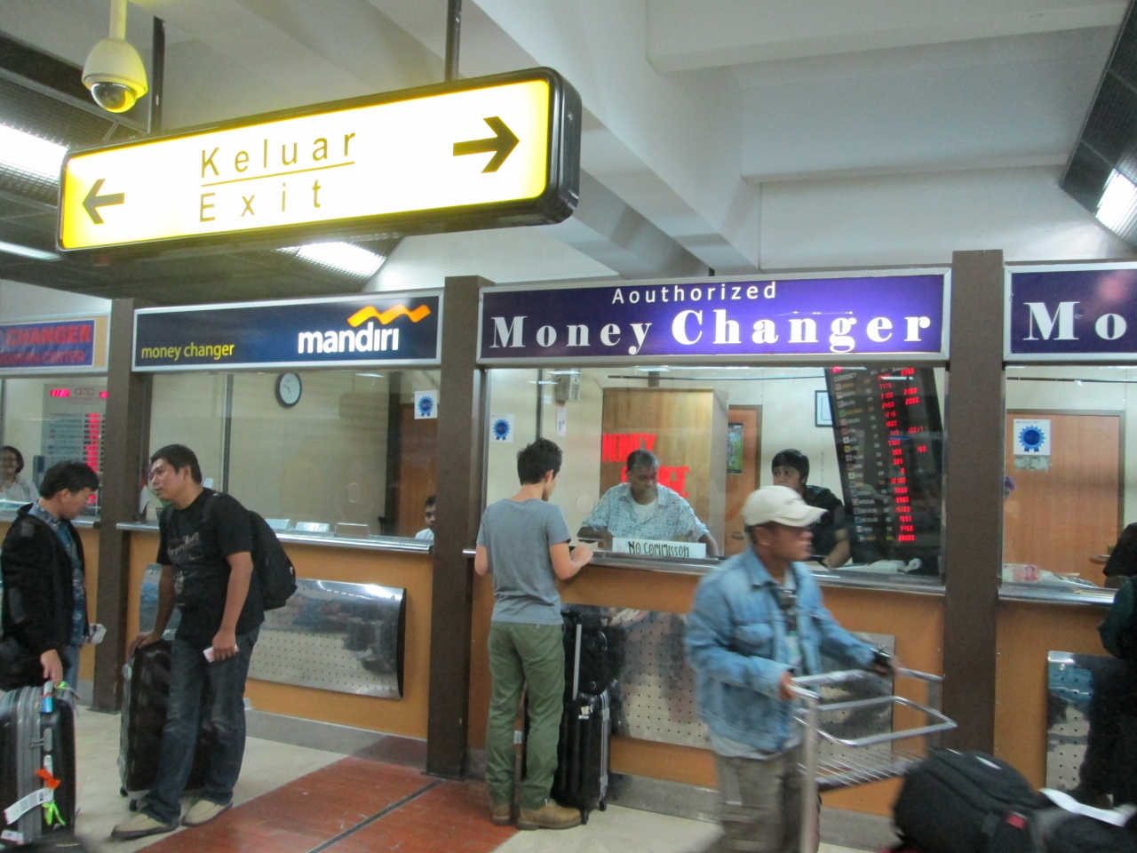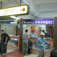 スカルノハッタ空港に到着して市内までのタクシー代のため両替しました。税関を出たすぐのところに数軒両替屋が並んでいるので、レートを確認して一番良い店で交換しましょう。レートは電光掲示板、或いは、手書きのボードを持っていました。1万円に対して117万2千Rp.というレートでした。手数料はありません。