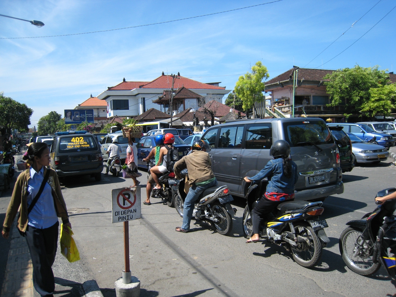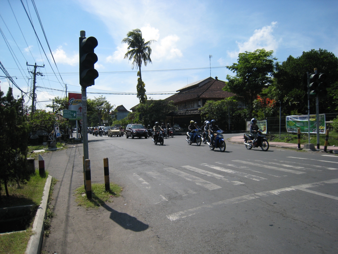 バリ島市内を歩くときには、アジアの都市らしくバイクの数がとても多いです。
