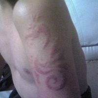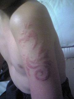 マリンスポーツの合間に 息子がした タトゥーが 今は肌が爛れて悲惨な状態です。