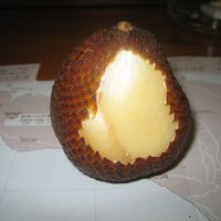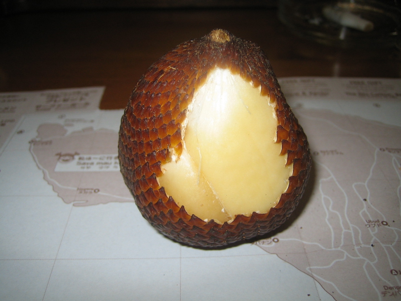 見た目は、ヘビ皮をまとった大き目の栗で美味しそうには見えません。
