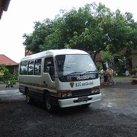 申し込んだタイのツアー会社(A)と請け負ったバリ島地元ツアー会社(B)。Aのシールを胸に貼りBを待ちます。もう間違いなく合えるはず!ところがBが手で持つ紙にはAではなくBの社名表示。分からないはず!!だから30分も会えなかったのか?暑い中不安な長く感じた時間。私たちは荷物を少なくして、トランク無し。鞄は機内持ち込みだけ。荷物が周ってくるのを待たないから。出迎えのガイドが来るよりも。私たちが手続きを終えるのが早すぎたのかな?地元ツアー会社の名前の確認が必要ですね。