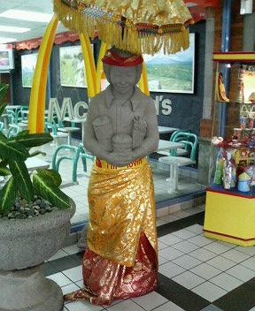 マクドナルドで民族衣裳に身を包んだ、バリ風味満載のドナルドを発見。場所は多分レギャンあたりだったハズ。