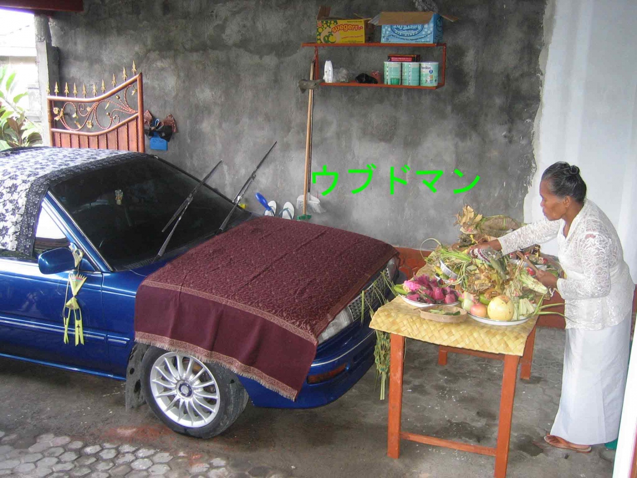バリヒンドゥ教は210日間ごとに鉄類の道具にお供えを捧げるお祭りがあります。その日は今回4月28日でした。この祭りはTUMPEK LANDEP(トゥンプクランドゥプといいます)といい、鉄類の役立つ全ての道具にお供えを作って鉄の神様に感謝の気持ちを捧げるという信仰感。車を始め、鉄類の機械が全てです。その鉄類の機械で人間は出来ないことが出来るようになるという信仰感でこの祭りは年に2回行うことになりました。面白いでしょう・・・・