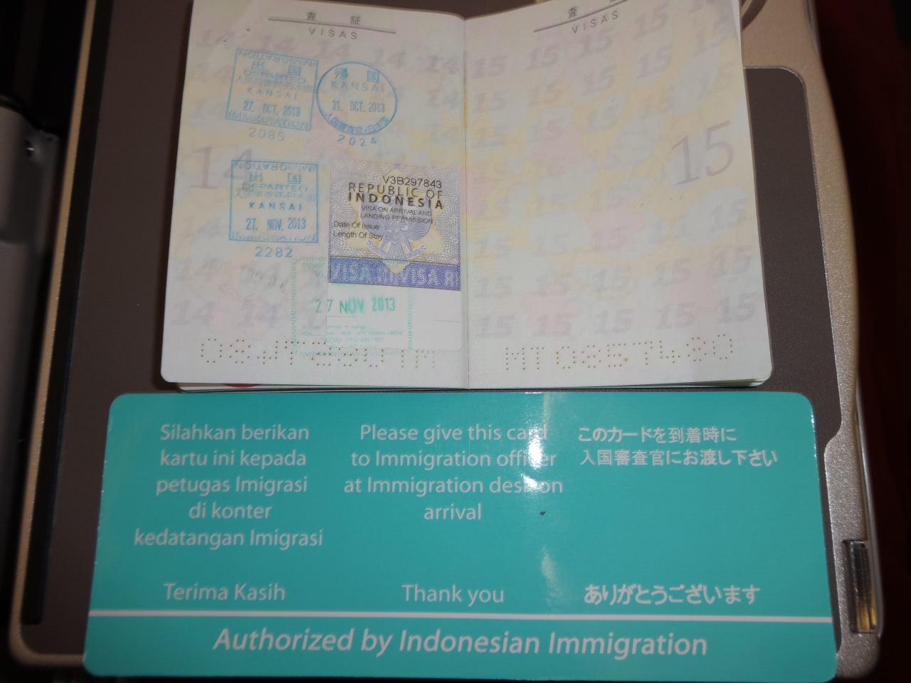 ガルーダインドネシア航空の便であれば機内で取得することが出来るらしいのですが、私は違う航空会社を利用したので、着いてから取得しました。