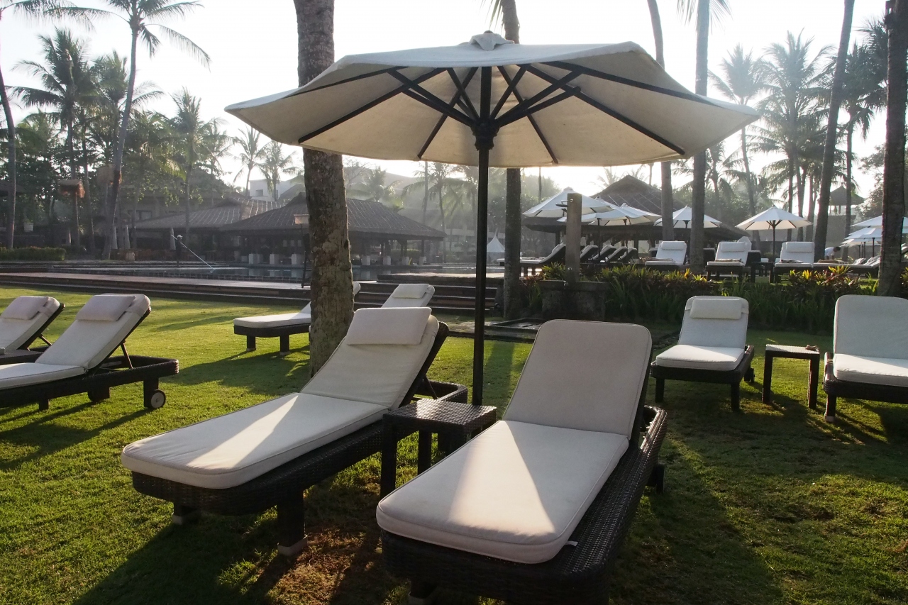 ホテルには4泊しましたが、一日のうちのほとんどをプールサイドや海が見える場所のチェアで過ごしました。これらのチェアはすべて無料で、ホテルのバスタオルがかかっていないところは空いているので、自由に使えます。天蓋付のチェアもあり特別な感じがしましたが、それらも無料です。バスタオルはプールサイドで無料で何枚でも貸してくれます。朝9時30分前であれば天蓋付き以外のチェアであれば、かなり空きがありました。それ以降は順次埋まり満席状態となり、午後2時を過ぎるくらいからまた空きが出てきます。私達は初日11時30分頃プールに繰り出しましたが、奇跡的に一つ空いていてそこを使いました。