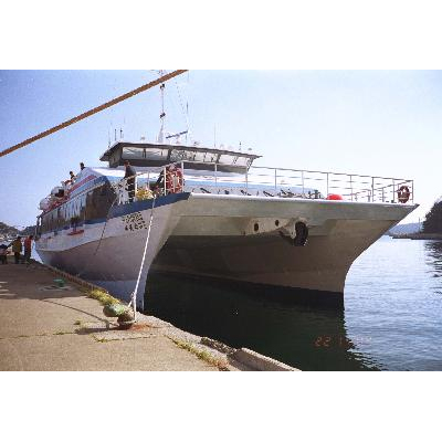 対馬から不定期ででている小さな船「あをしお」もあるが、一番ポピュラーなのは、韓国の高速船「シーフラワー」。
