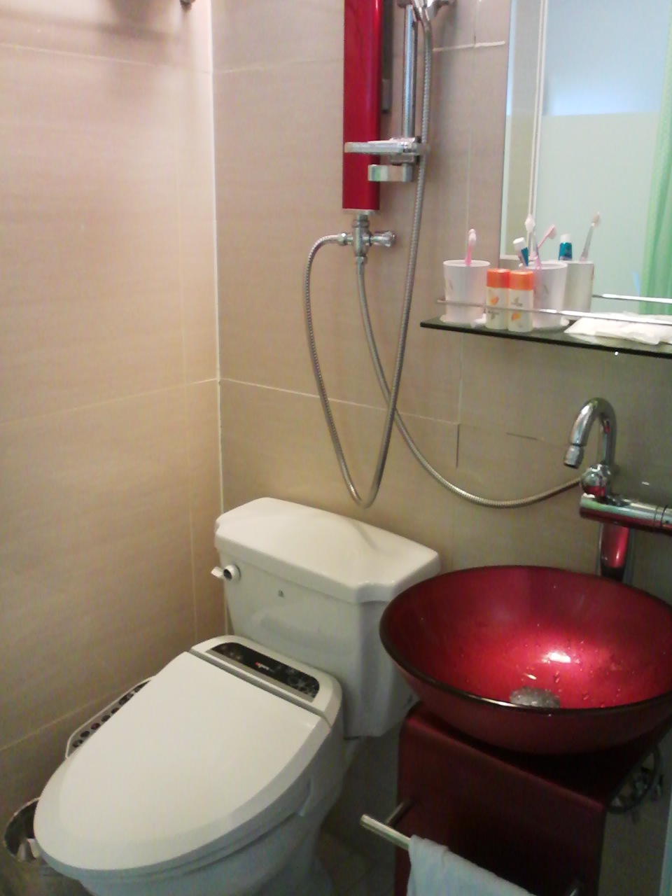 韓国語表示のため、どのボタンを押せば流れるのか?結局分からずじまいで流せませんでした。 あとからわかったのですが、韓国では配管が狭いので紙詰まりを防止しているのいか?それとも水の節約をしているのか?よくわかりませんが、トイレットペーパーを流しては駄目らしく、汚物入れのボックスに捨てるようなのです。驚きました。