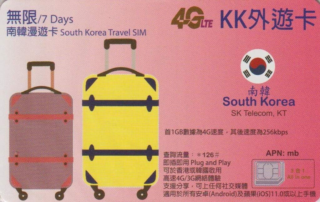 【KK】韓国 Wスタンバイカード(SK Telecom・KT)4G-LTE/3G 7日間 無制限 データ通信 SIMカード Korea W・Stand-by 外遊カード