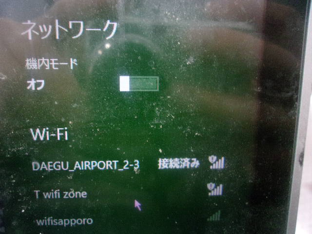 通信速度: 速い つながりやすさ: まったく問題なくつながる また使いたい: はい今回は大邱空港を経由して韓国に出入国しましたが、この空港はWifi環境に関してはとても良く、無料で快適にネットサーフィンを楽しむことが出来ました。ただ、初期画面などが一切表示されず、利用規約への承諾画面なども、パスワード設定なども全くありませんので、セキュリティ面では心配な部分もあるかなと感じたWifiでした。