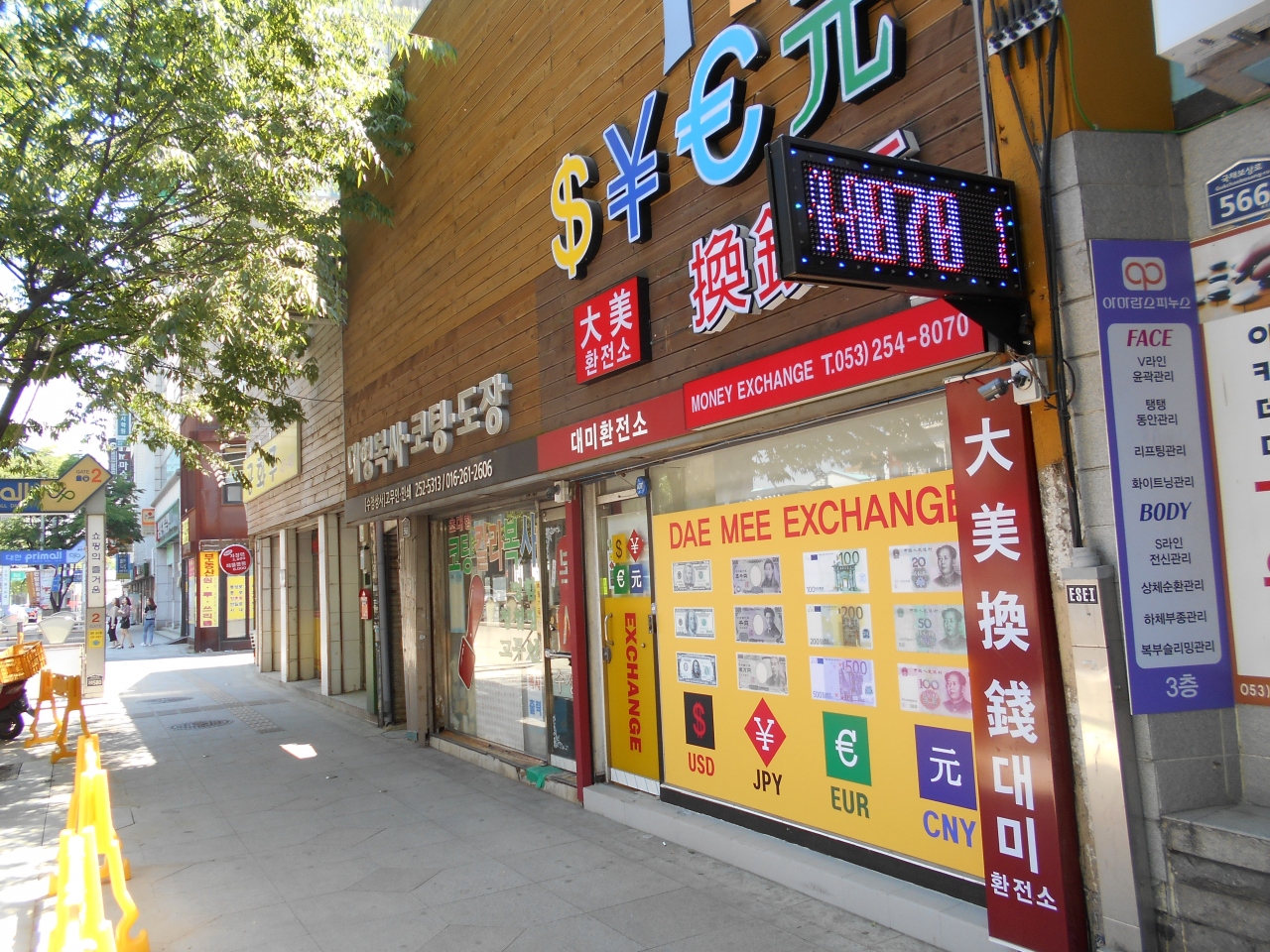 ゴールデンウィークに大邱の街中を観光しました。 大邱は有名観光地ではないせいか、旅行中あんまり両替商はみかけませんでした。名物グルメのタロクッパの食堂が並ぶ通りの向かい側でやっと両替商をみつけました。念のため大邱に移動する前に、釜山で両替しておいてよかったです。