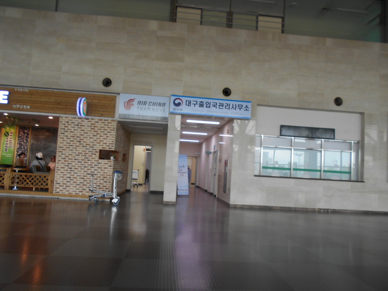 大邱空港で入国したとき、入管手続きは20分くらいかかりました。税関検査を出てパスポートをチェックするとビザの有効日の日付がないことに気づきました。ソウルや釜山の過去のビザには日付があるので、念のため2階の入管のオフィスでたづねると必要ないとのことでした。