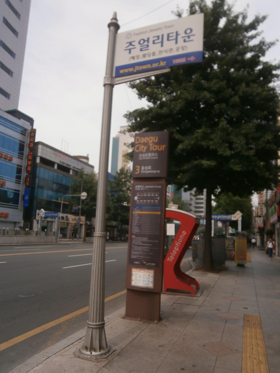 大邱の主要観光地を廻る2階建バスで、時にはオ-プントップ車両。凡そ40分毎の間隔で運転されていて、好きな場所で自由に乗り降り出来る。出発は東大邱駅だが、どこの停留所からでも乗降可能で、チケットは運転手から購入。外国人旅行者で市内宿泊者は20%無料なので、宿の予約表などを持参しよう。又、バス乗車券でモノレ-ルの割引も受けられると書いてあった。