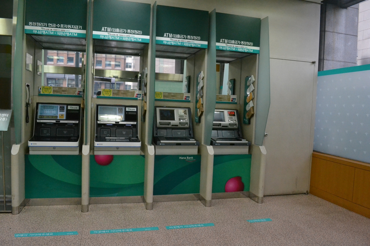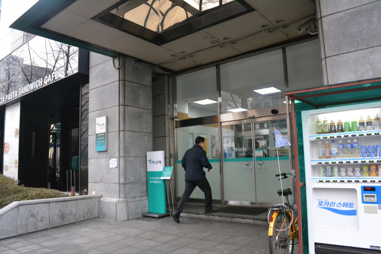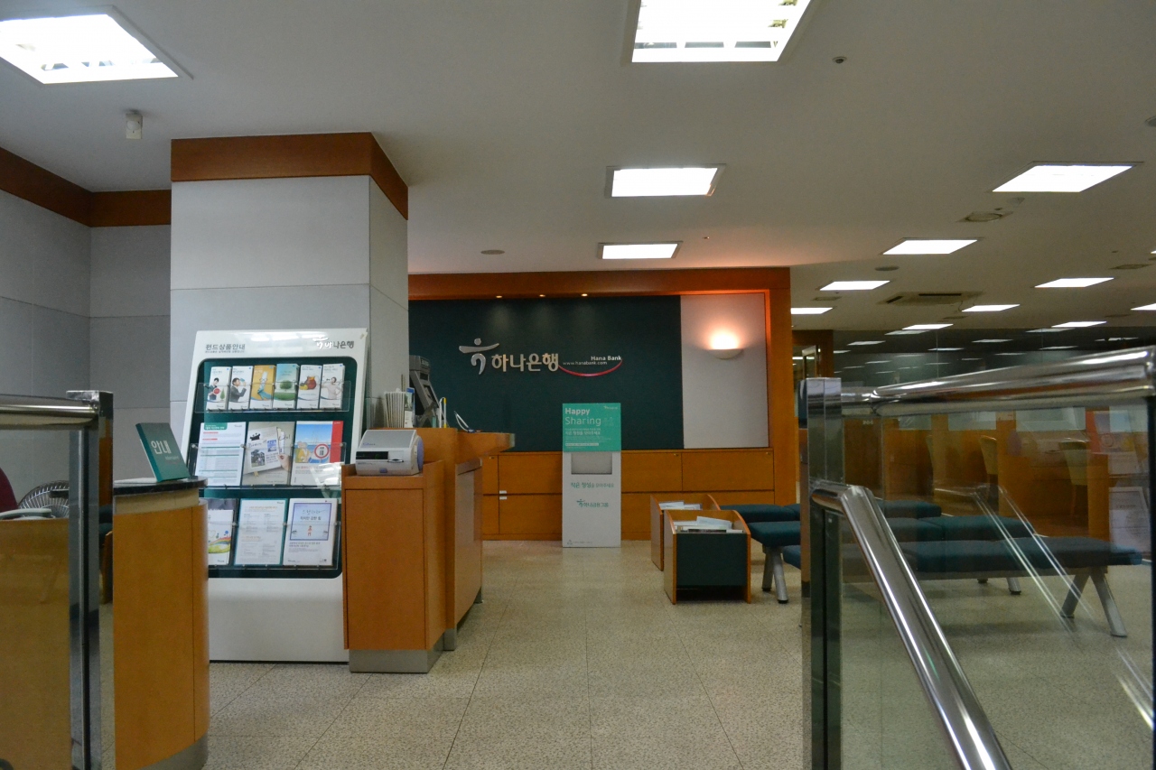 市庁の近くのハナ銀行は、1階にATM、2階に窓口がある店舗でした。