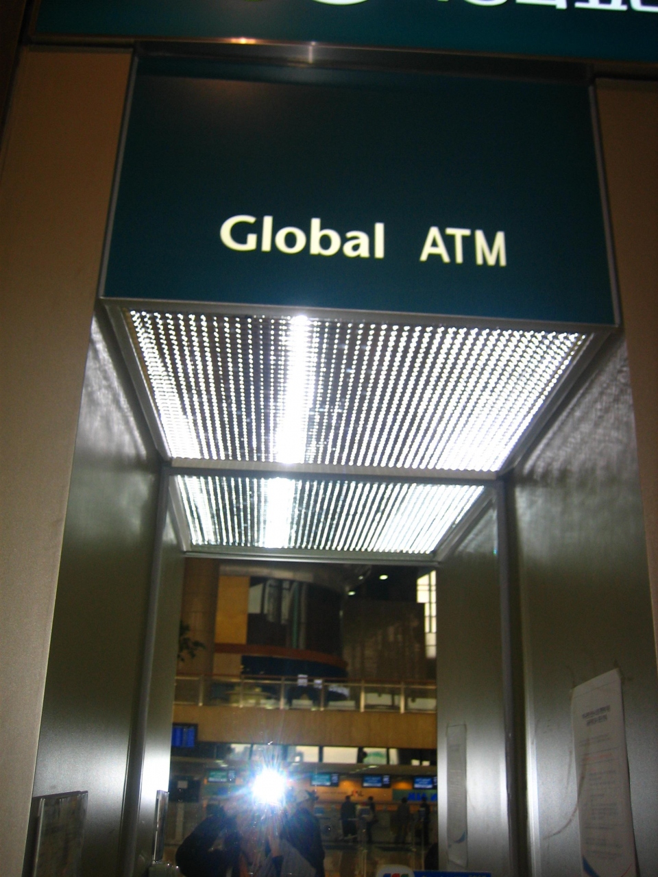 取り扱い不能。。。今年(H21)のプサン港では、下ろせたのになぜ。。。?と思いながら銀行のATMで理由がわかりました。ATMにグローバルの文字とクレジット会社のステッカーが、あるところでないとおろせなかったのです。