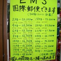 買物の荷物が多いということで海外で始めて利用したEMS。ホテル近くのドリームマートで9日夜に頼んだところ、12日午前中に届きました。日本国内だったら九州でも北海道でも同じ料金のようです。料金は重さで異なるようで、10.5kgで36900ウォン(¥2450)この安さと速さは感動ものです!詳しくはこちらで・・ http://4travel.jp/traveler/mamimama/album/10312958/