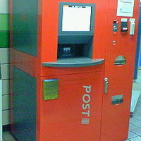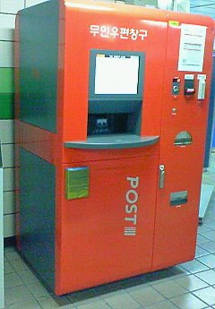 その連結部分のロータリーへ改札から繋がる通路に、郵便の重さを量って切手代わりのスタンプシールを発行、投函(お預かり)してくれるマシーンがあります。