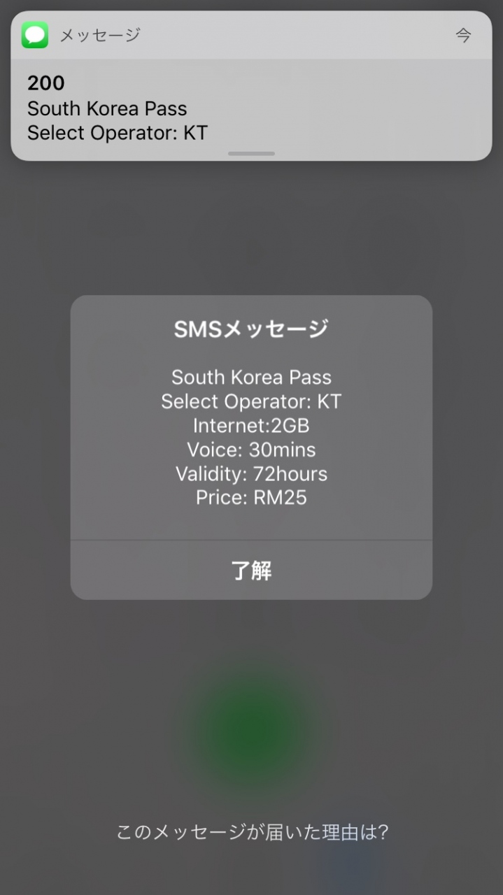 SMSから飛んできていたURL経由で始めることができましたが、釜山へ着いて1時間くらいは繋がりませんでした。