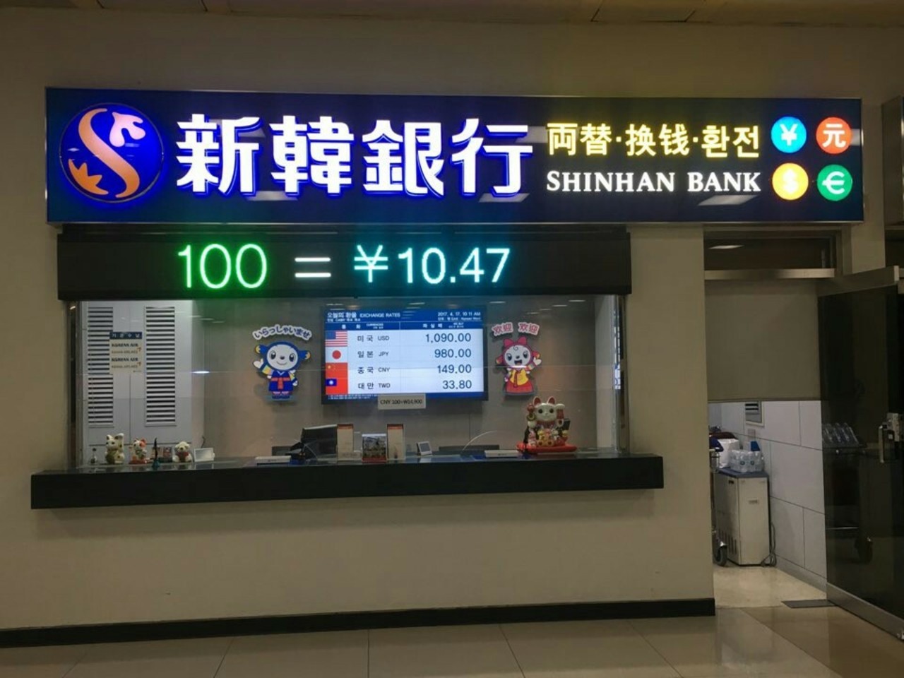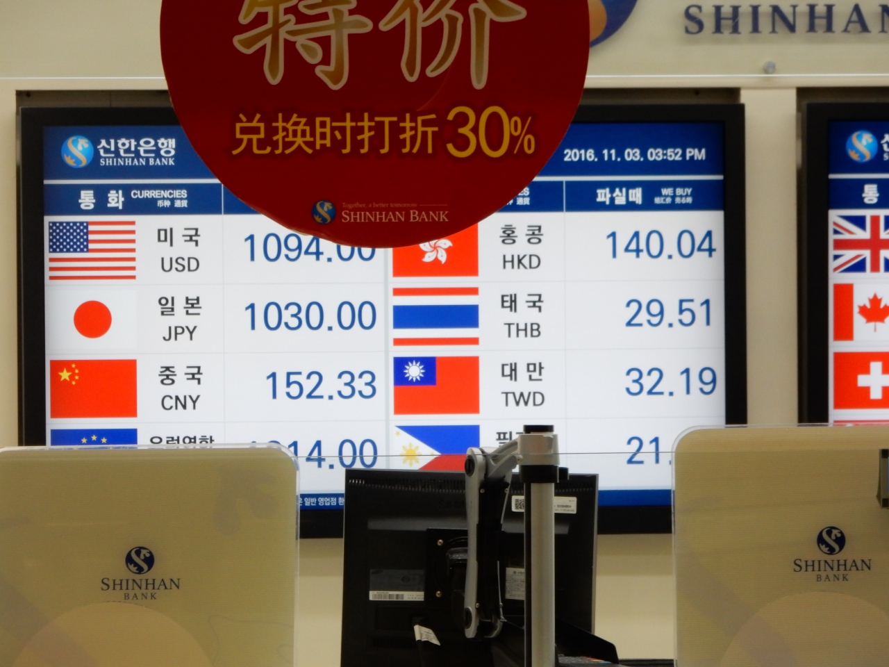 日本でも換金できますが、羽田の新韓銀行で、中値±3%ぐらいの数字が出ている時以外は日本での両替はお勧めしません。新韓以外の日本の銀行や両替屋は軒並みレートが悪いです。