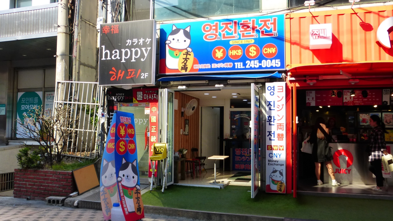 とはいえ、明洞のレートのいい両替商の間の差は1万円で60円ぐらい。