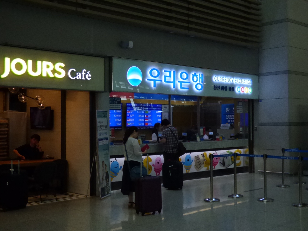 私は今回ICN利用でソウルへと向かいましたが、同日の時間帯で空港からA'REXの直通列車でソウル駅に向かい、そこの両替所とレートを比較してみると、買い取りレートで、空港内では¥1=W10.3でしたが、ソウル駅では¥1=W11.07と、僅か3000円程しか両替しなかった私のような貧乏人でも2000W以上の差がありました。やはり空港内ではミニマムの両替で抑えておくことが重要かなと思います。空港内ではカードキャッシングでミニマム(大体2万ウォンから)利用、その後市内でメインの両替、というのが王道と言えるでしょう。