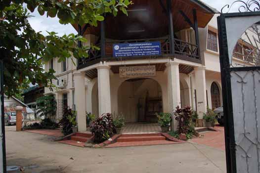 (2)近くの地元レストランで昼食後に北方向に上り、シーサワンウォン通りのワットマイを再度訪問、入場料が再度10,000Kp=約150円かかりましたが。それから隣のルアンパバーン国立博物館を覗くとなんとオープンしているではありませんか!! 時刻は午後3時前、休館日のはずなのに何故オープン?とはあまり深く考えずに、それからゆっくりと博物館を見学しました。次は博物館正門の目の前にあるプーシーの丘への昇り口へ。ゆっくり階段を上っても20分位で頂上です。夕方5時過ぎには本日の観光は終了、そして残ったのは早朝の托鉢見学です。