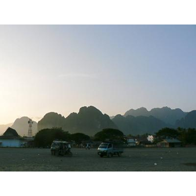 現在は、米軍の基地はないが、1960年代のベトナム戦争時に、米国は秘密基地をバンビエンに建設していた。当時、ホーチミンが南ベトナムを共産化する前に、ラオスを共産化する作戦を進めていたことに対応するためだったそうだ。 米国はラオスへの軍事介入はしていないことになっていたので全ては内密だった。米軍 パイロットは「ラオスの桂林」といわれる美しい光景を天国のように感じながら出撃したと言われる。米軍飛行場跡も悲惨なベトナム戦争の残骸のひとつだ。米軍飛行場跡は広い空き地になっているが、ここから見る夕日が美しい。