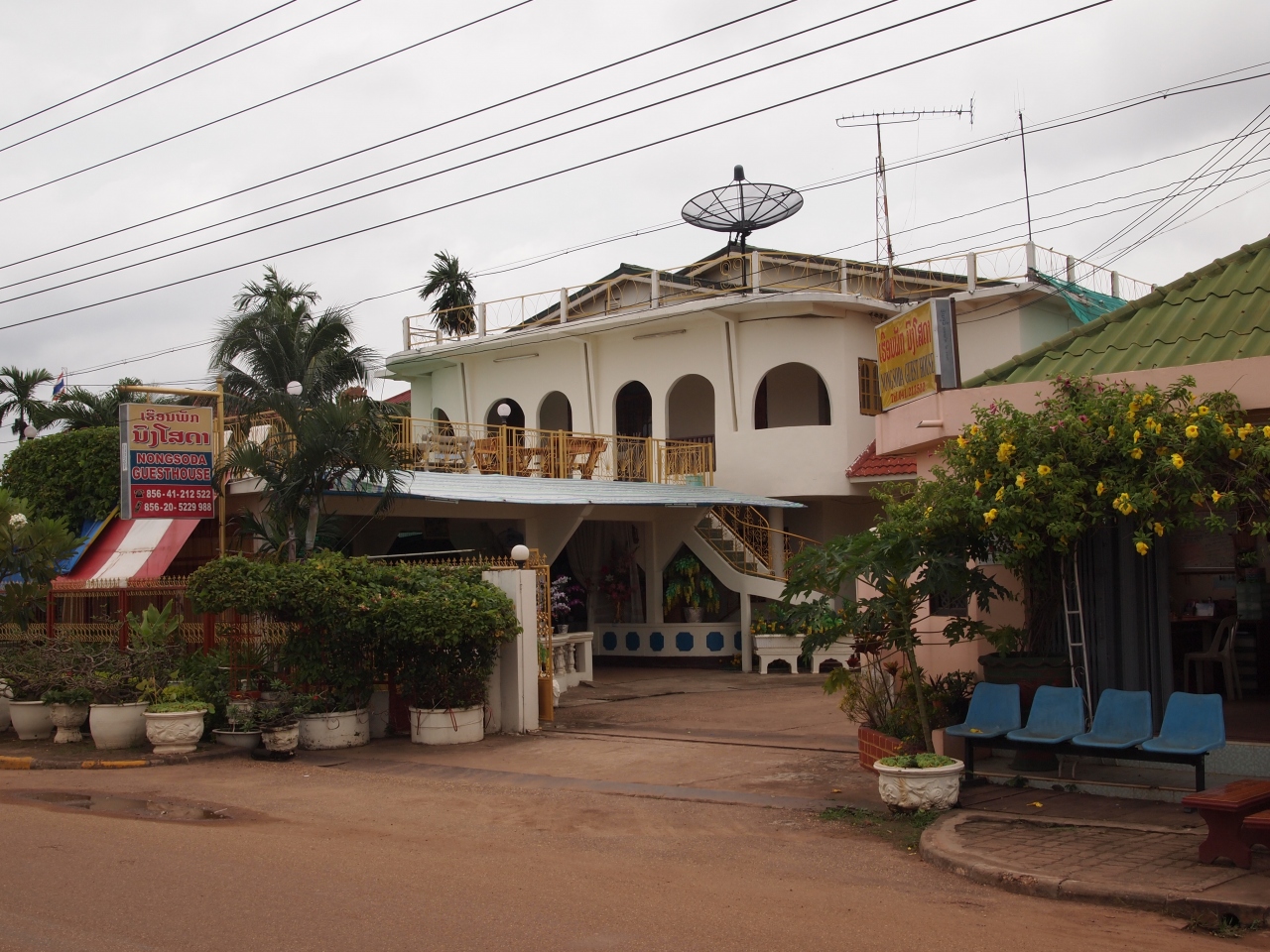 市場から歩いて5分くらいの場所にあるゲストハウスです。建物は、最近改築したのか新しめで、部屋も狭くない程度です。泊まったのは、ファン・水シャワー、テレビあり冷蔵庫なしのシングルで一泊6万キープでした。また2階にはきれいなテラスがあり気持ちよかったです。