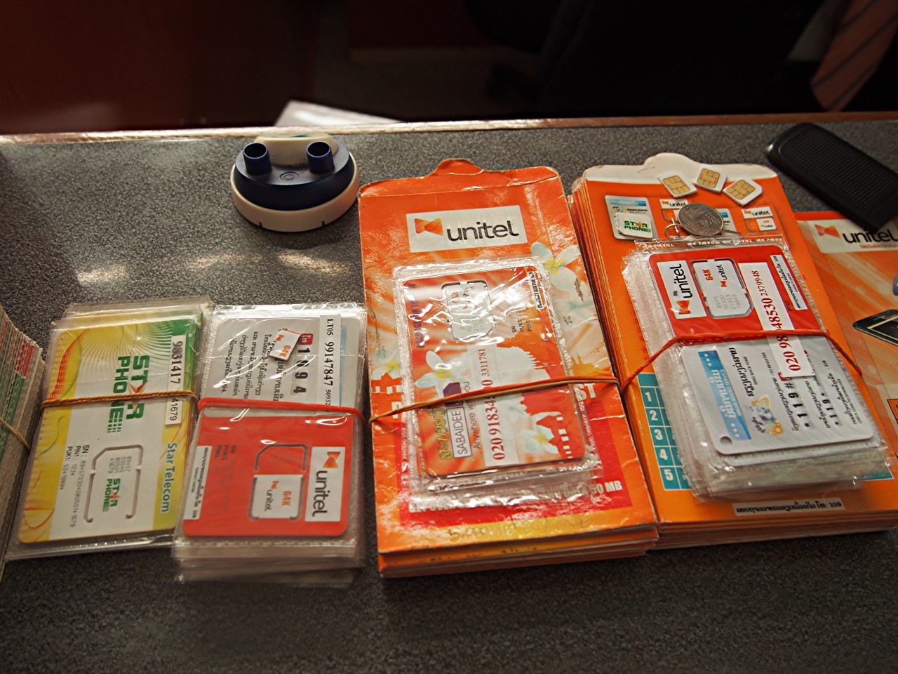 ワッタイ国際空港の税関を抜けて、到着ロビー出口左側にSIMカード販売のブースがあります。