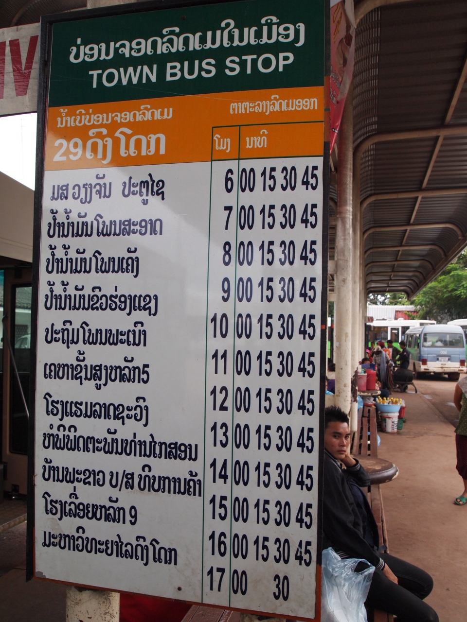 日本より寄贈された緑色の車体のバスが、中央バスターミナル(タラートサオ・バスターミナル)とヴィエンチャン郊外とを結んでいます。