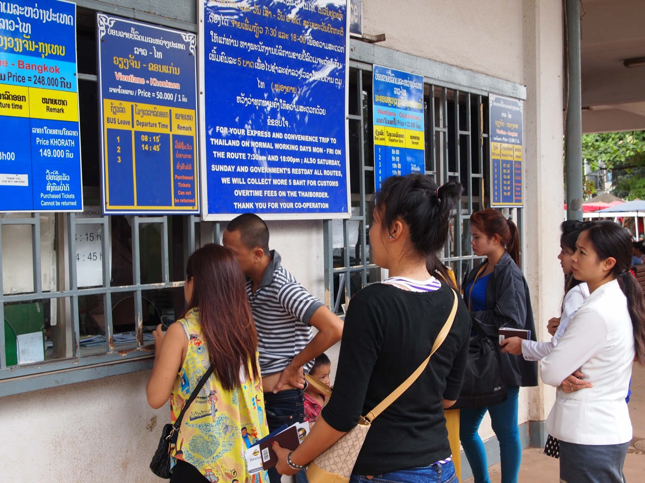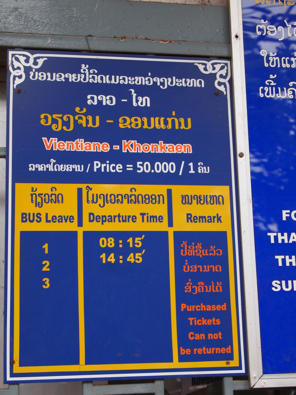 ビエンチャン中央バスターミナル(タラートサオ・バスターミナル)発ウドーンターニー(タイ)行き国際バスの時刻表です。