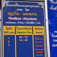 ビエンチャン中央バスターミナル(タラートサオ・バスターミナル)発コーンケン(タイ)行きバスの時刻表です。