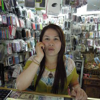Who is working at mobilephone shop in this Tarat Sao Market in Laos of her.