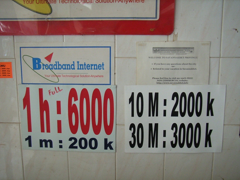 2年前は1分150kip~200kipだったのに、いつの間にか1分100kipに。そしてスピードがアップしていて驚きました。あまりやることもないからか、いつも旅行者でいっぱいです。