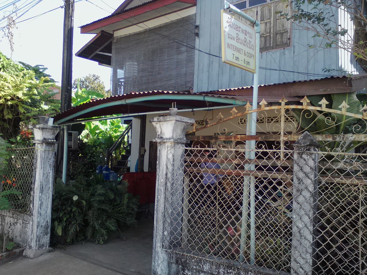 こんなド田舎の村でもほとんどのゲストハウス、ツーリストレストランではFree Wifiが使えますがネット屋も存在します。場所はワット アマットの南東角。店の名前はないそうですが「INTERNET & COPY」の看板があります。